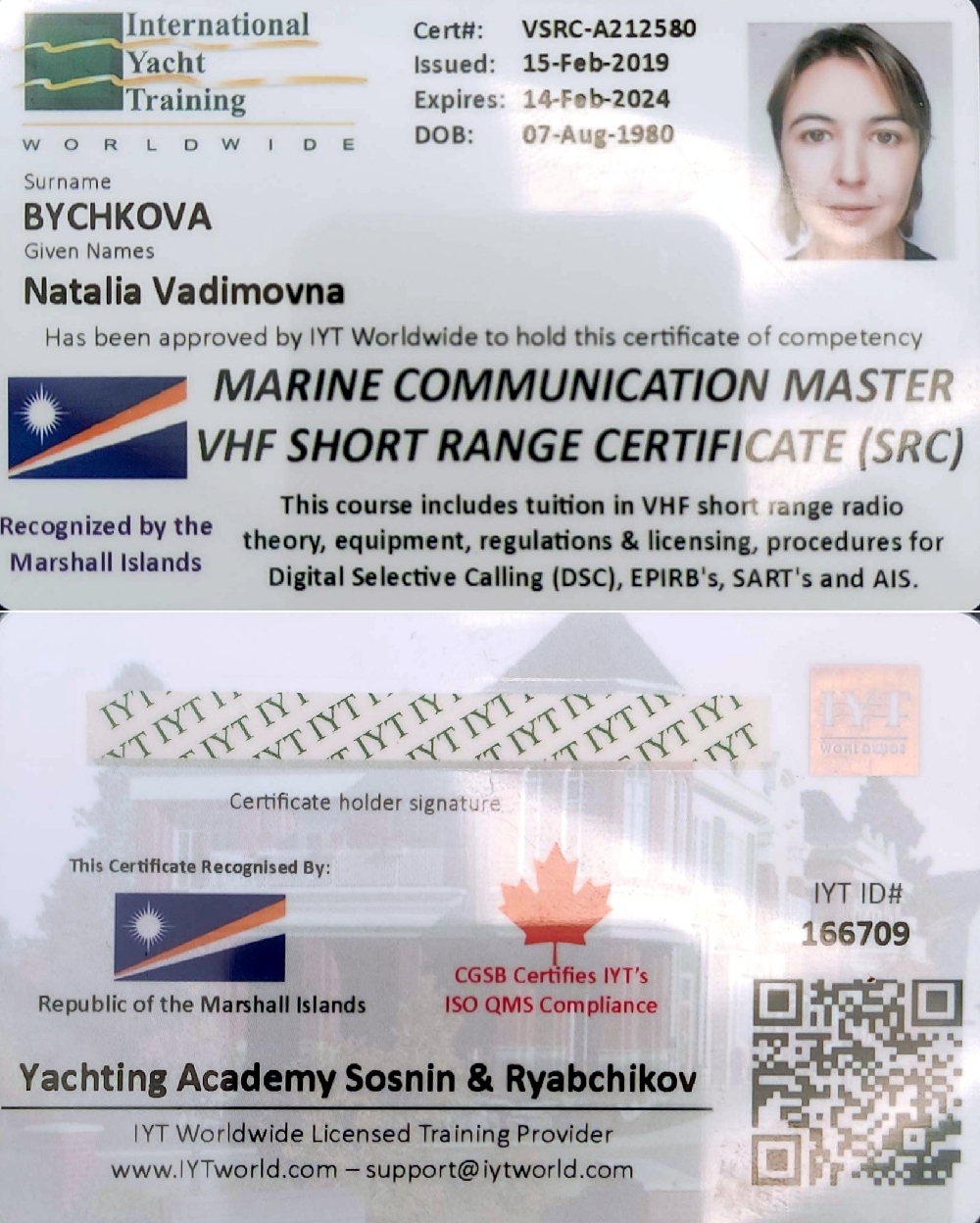 Квалификация: Судоводитель парусно-моторных судов.