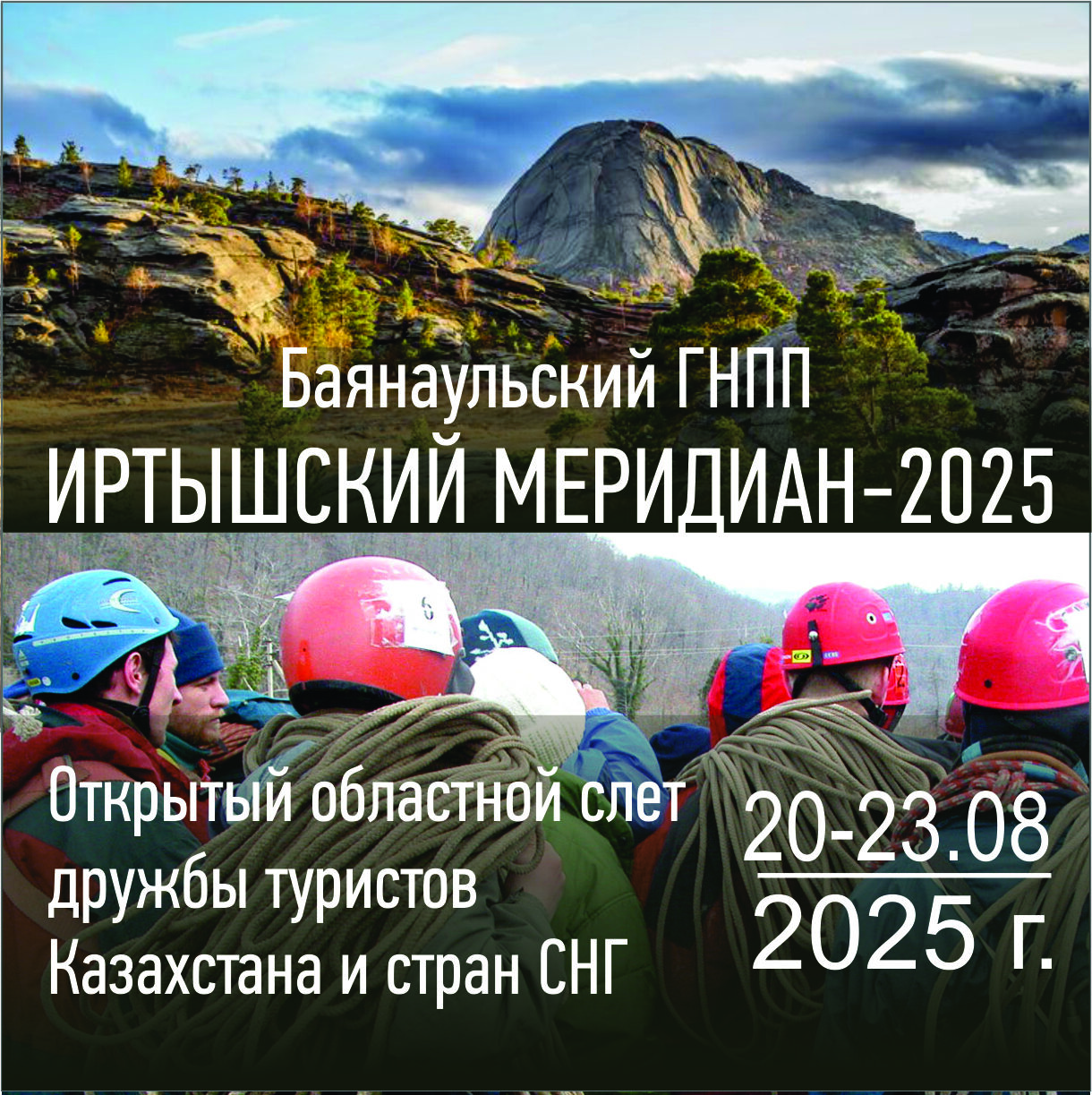 С 20 по 23 августа 2025 года на территории живописного Баянаульского национального природного парка (Павлодарская область, Казахстан) состоится открытый областной слет дружбы туристов Казахстана и стран СНГ — "Иртышский меридиан–2025".
